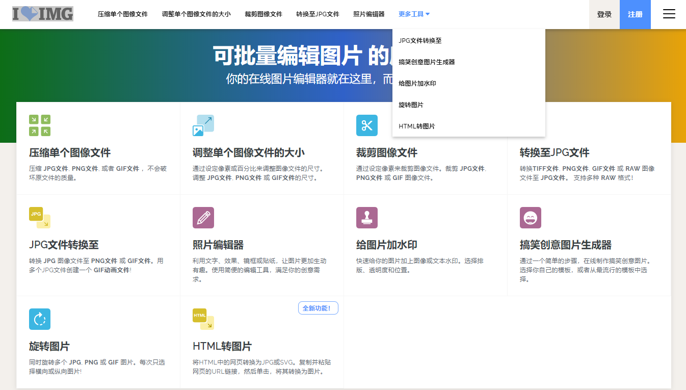 可以进行图片的压缩,尺寸调整,裁剪,图片生成器等等