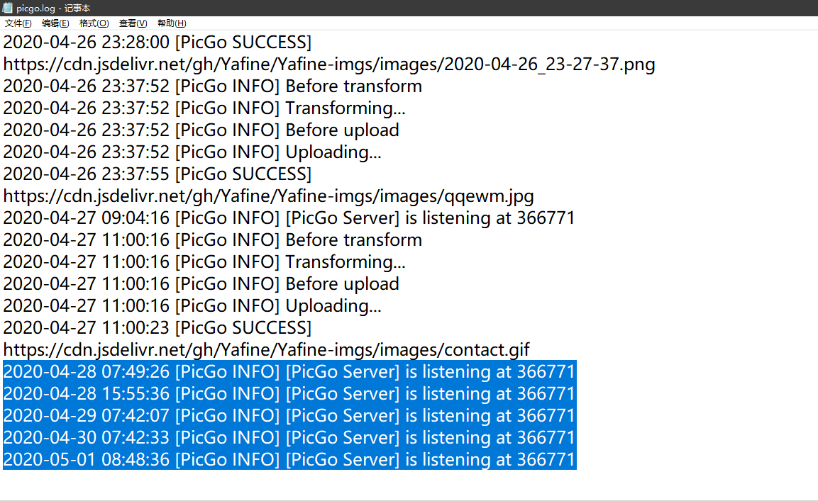 PicGo的日志(log)文件是个好东西,如果出现报错,图片上传不成功的情况,大家可以打开日志看看,根据日志输出,然后自己尝试解决,百度是个好东西!😎😎😎