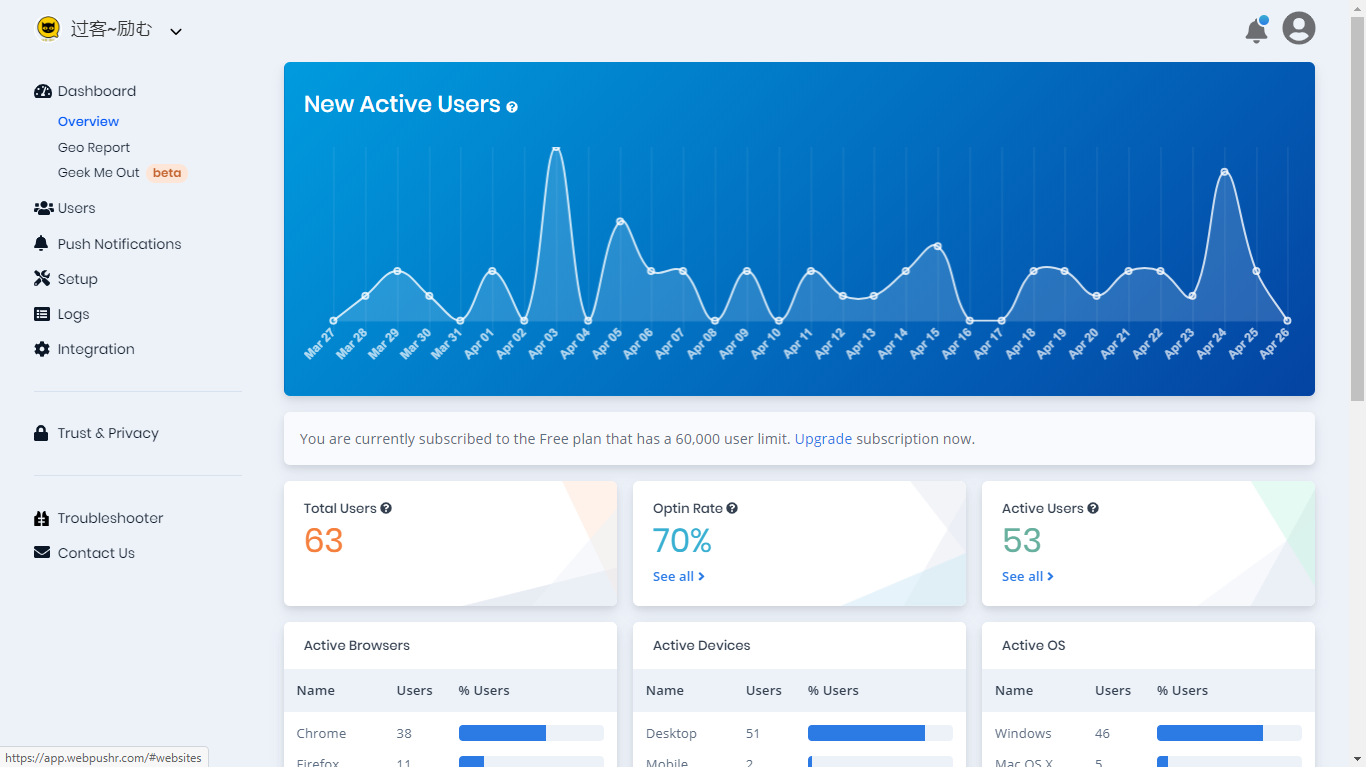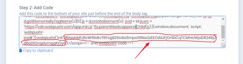 其中webpushrKey,webpushrAuthToken和trackingCode的值在官网注册得到。
