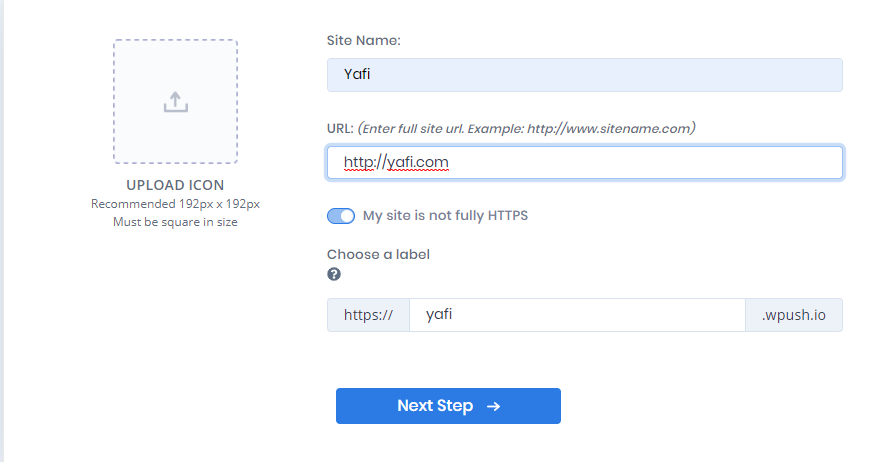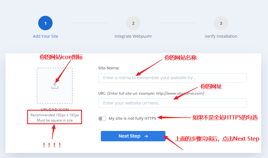 纠正图中的我的一个错误,全站不是HTTPS的不需要勾选,当你输入HTTP链接的网址,它会显示如下图的情况,会给你分配一个HTTPS的域名。因为Web push notications仅支持HTTPS的网站,不支持HTTP的网站